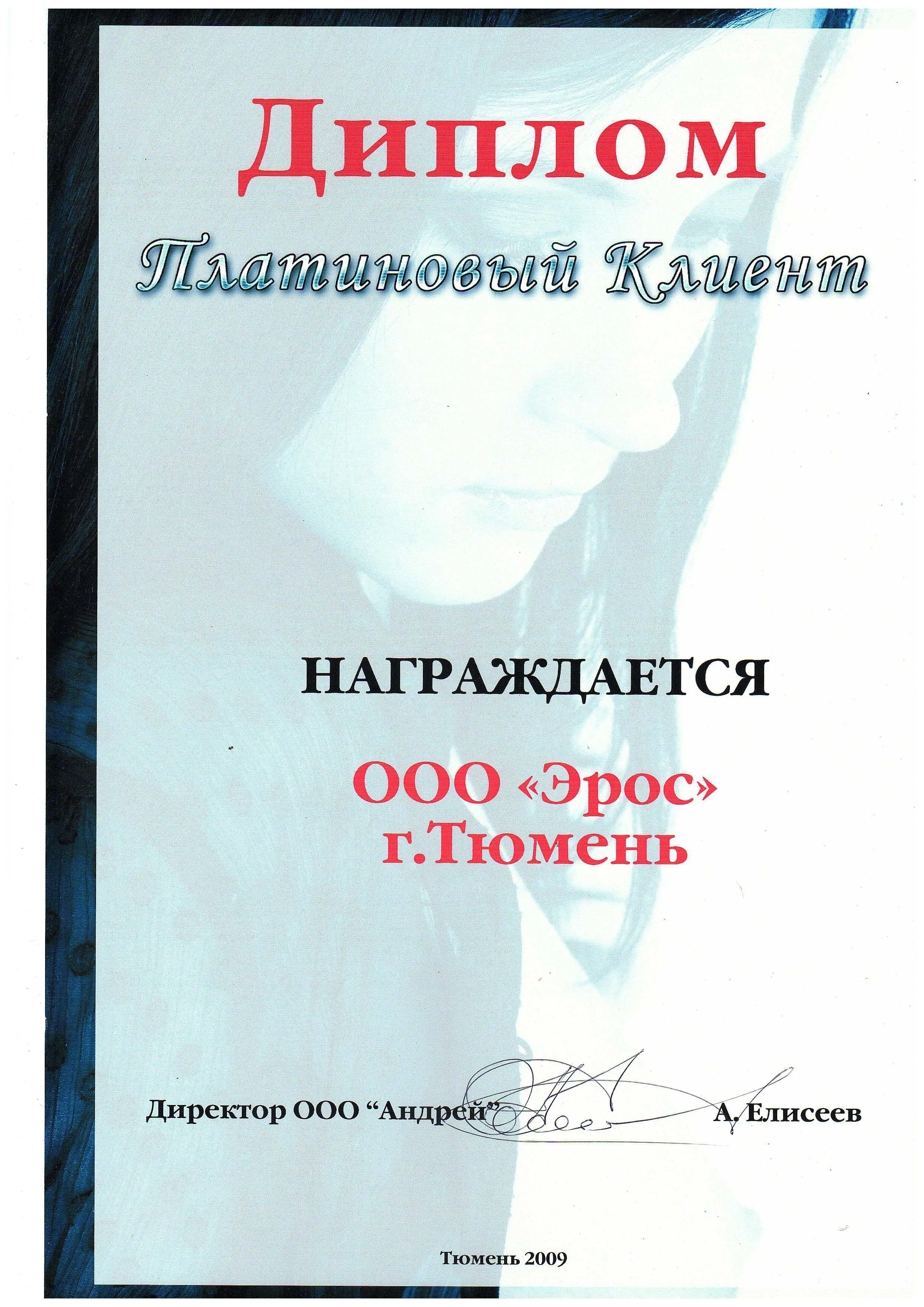 Платиновый клиент фирмы "Андрей" 2009 год