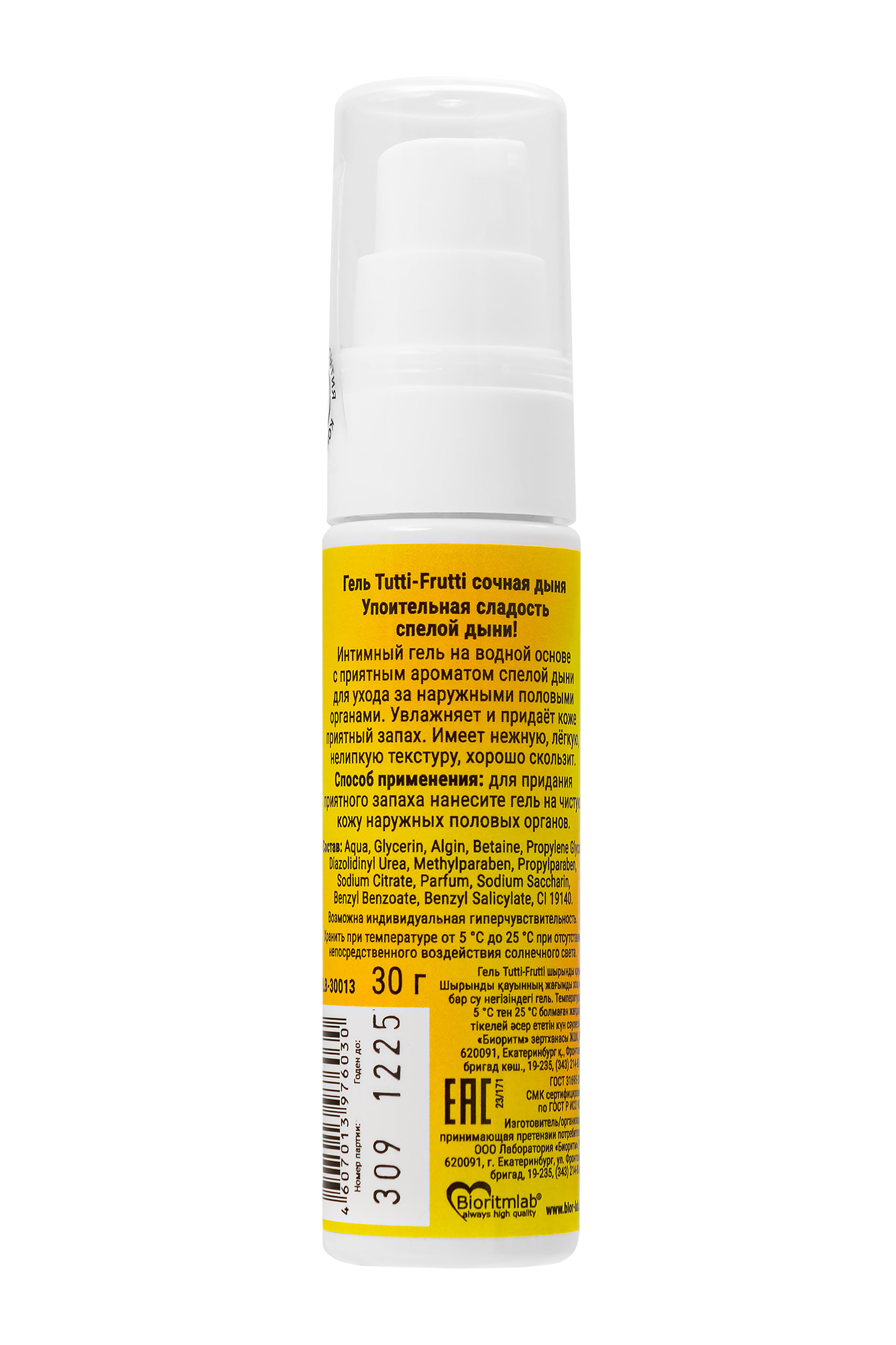 TUTTI-FRUTTI сочная дыня - гель-лубрикант на водной основе с сладким вкусом и головокружительным ароматом спелой дыни! Он откроет новые грани орального секса, подарит невероятные эмоции во время любовной игры! Гель имеет лёгкую нежную текстуру, увлажняет и ароматизирует. Не нарушает микрофлору интимных зон, подходит для использования в качестве лубриканта. Совместим с изделиями из латекса и синтетических материалов. Не липнет после нанесения. Легко смывается водой. БЕЗВРЕДЕН ПРИ ПРОГЛАТЫВАНИИ!